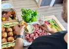 Lehký a elegantní cateringový box, který na stole působí svěže a moderně. Čerstvá krájená zelenina doplněná o hummus natural a humus špenátový přináší vyváženou kombinaci chutí...