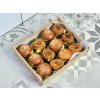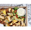1200 g krůtích miniřízečků v kukuřičné strouhance, doplněných o pažitkový crème fraîche a křupavé cornichony. Vše v praktické recyklovatelné cateringové krabici, kterou stačí...