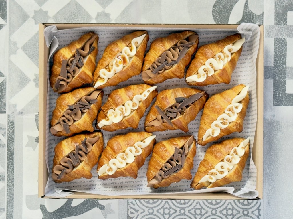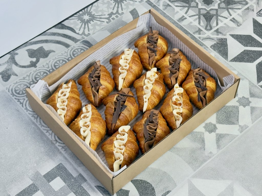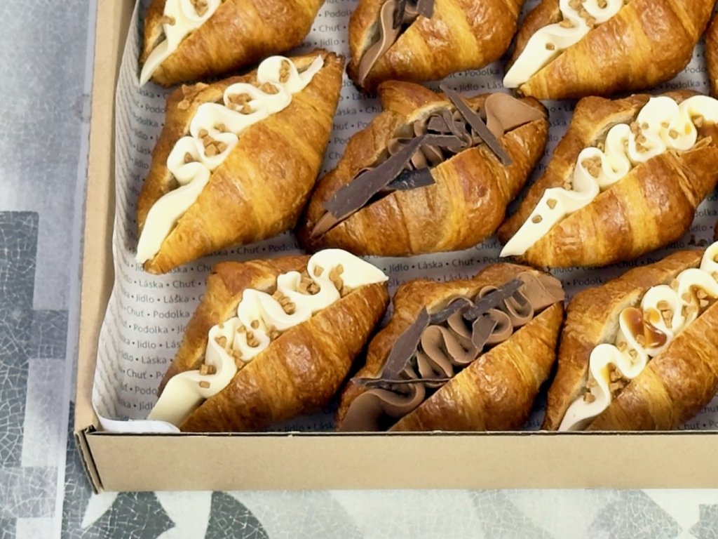 Každý croissant je pečlivě plněný krémovou ganache a zdobený křupavými detaily, které potěší nejen chuť, ale i oko.