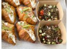 Jarní box 16 ks — croissanty s pomazánkou z medvědího česneku, ředkvičkami, smaženou cibulkou a mikrobylinkami. K tomu focaccia s hráškovou pomazánkou, mortadellou, vařeným...