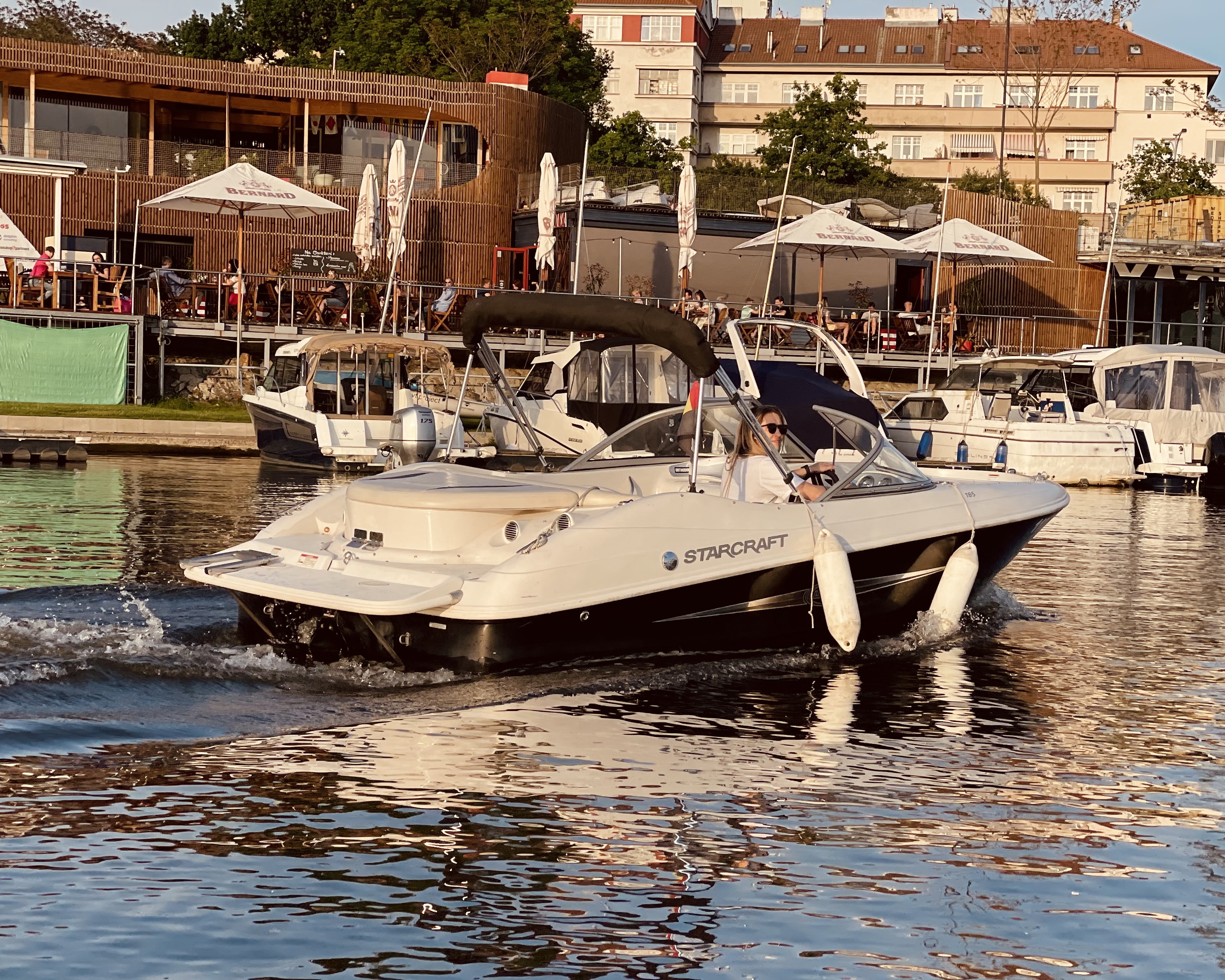 Menší sportovní lodě mohou přistát přímo v našem Yacht Clubu. Větší lodě, jako BitterMoon nebo Marie Magdalena, kotví na Náplavce. S jejich posádkami dlouhodobě spolupracujeme a zajišťujeme na palubě catering z restaurace Podolka.