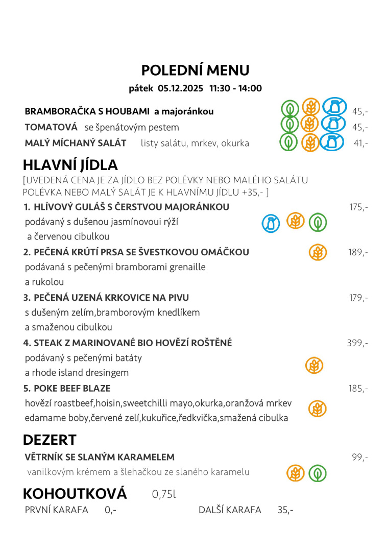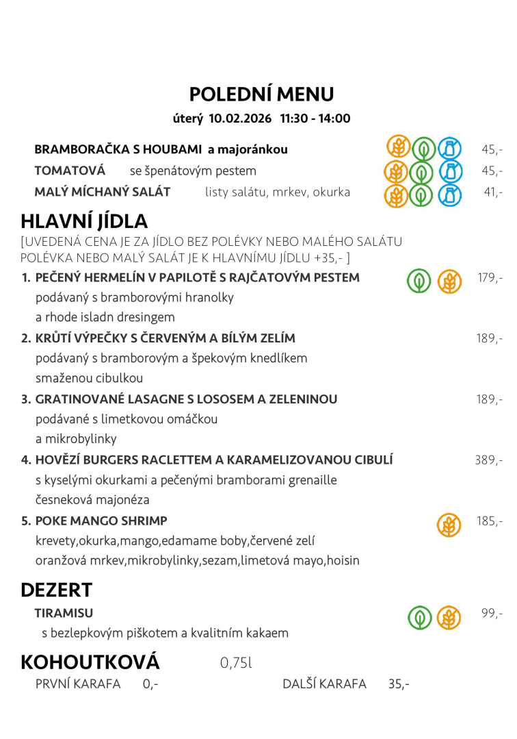 O víkendech a státních svátcích polední menu nepodáváme.