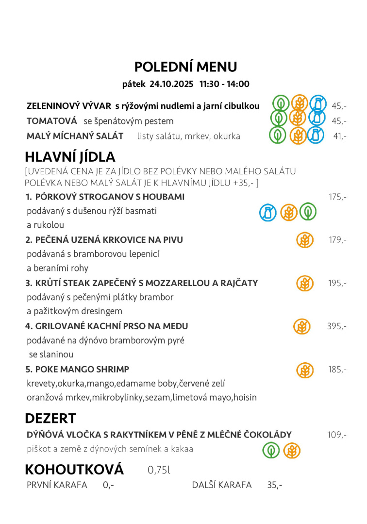 O víkendech a státních svátcích polední menu nepodáváme.