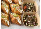 Verde box, vege věnečky a burgery, crudités s hummusem, poke tofu, quesadilla box, bagel s tofu — bez masa, vybrané položky i bez mléka.
